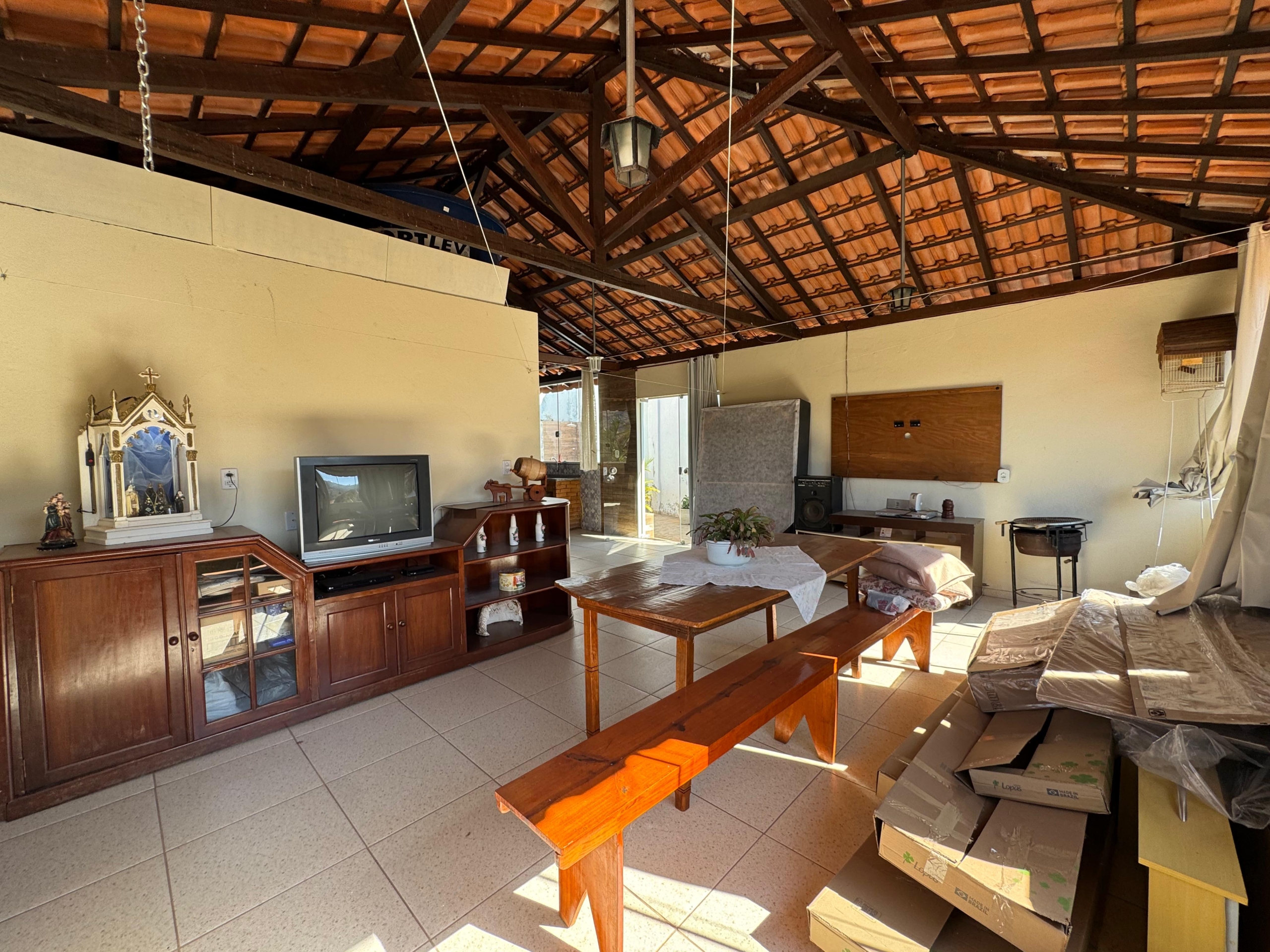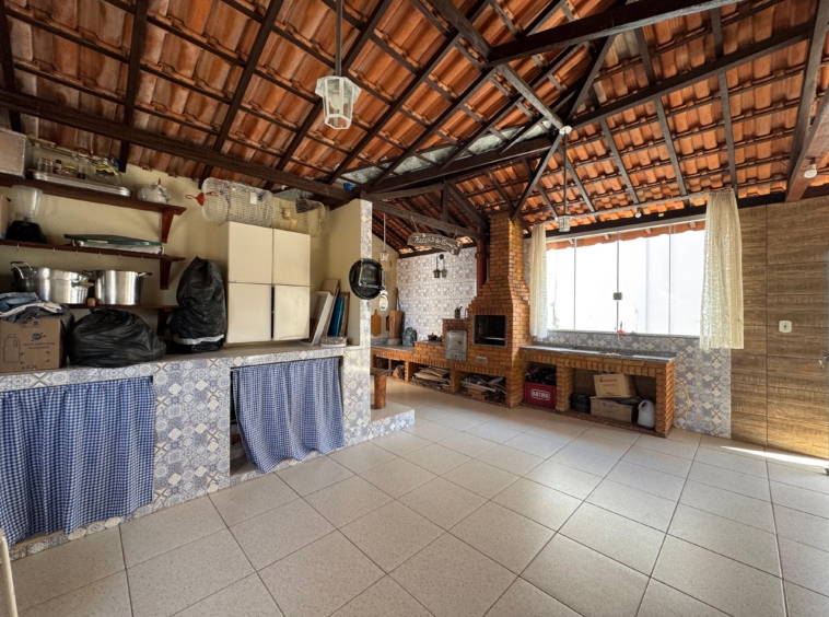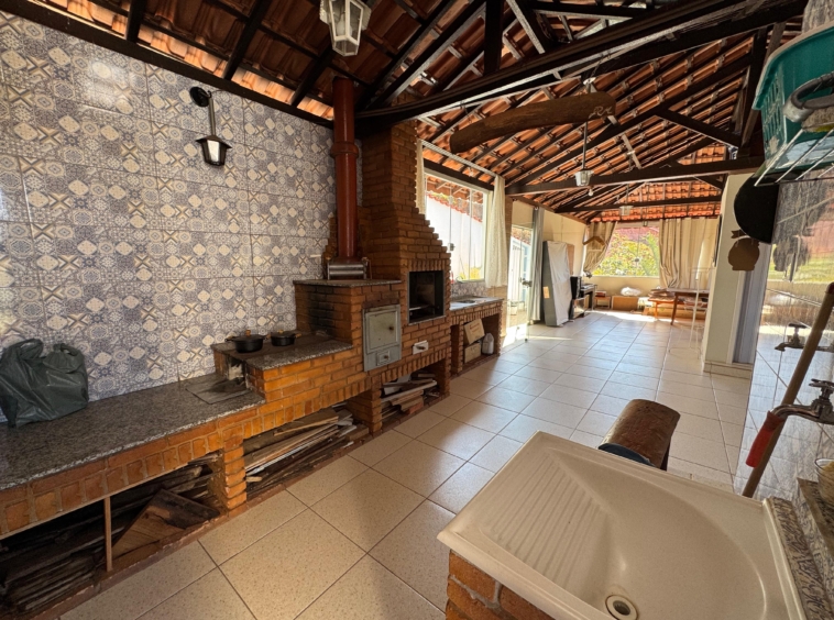 -Área gourmet com churrasqueira, fogão a lenha, banheiro, lavabo, piia