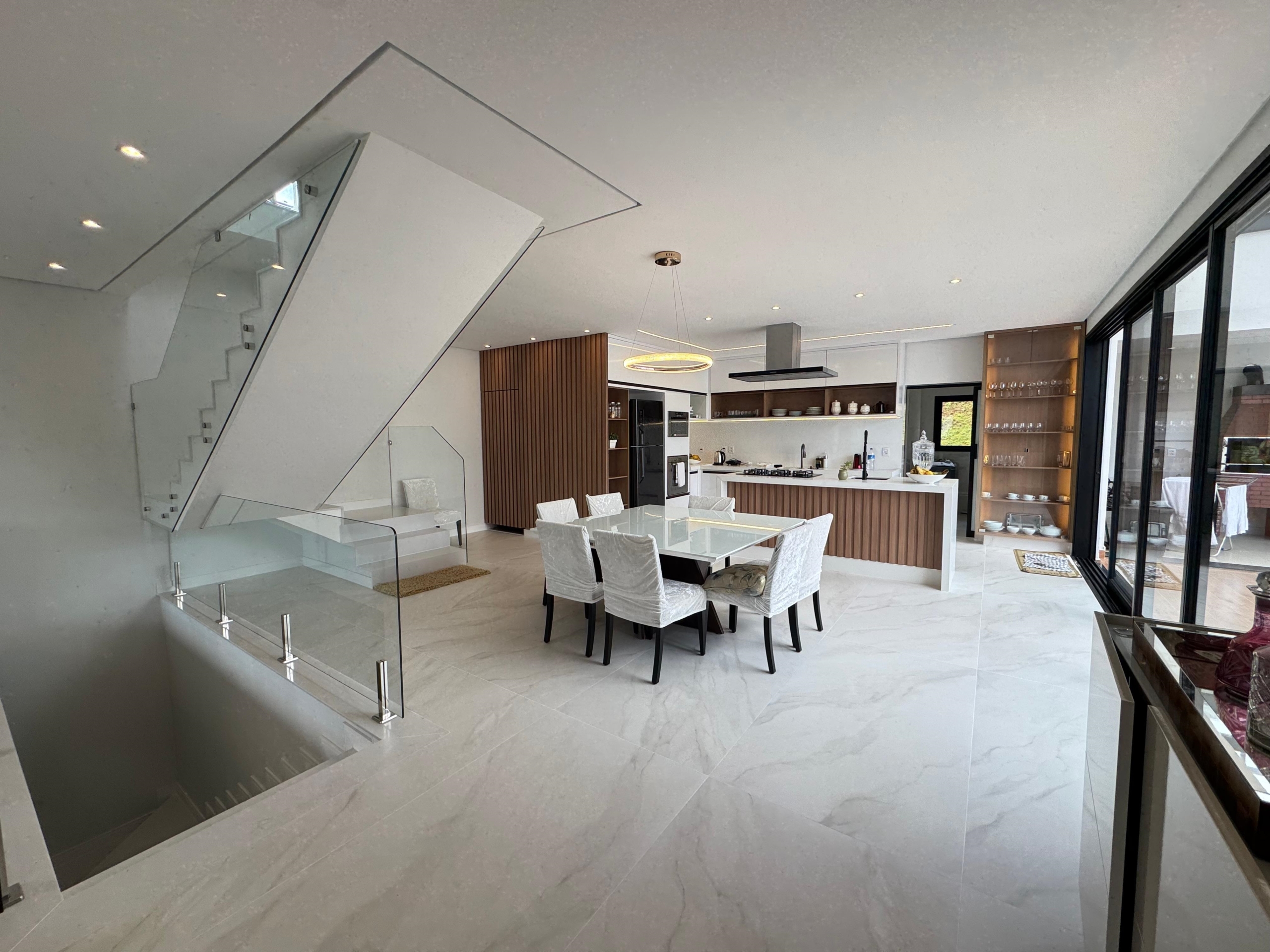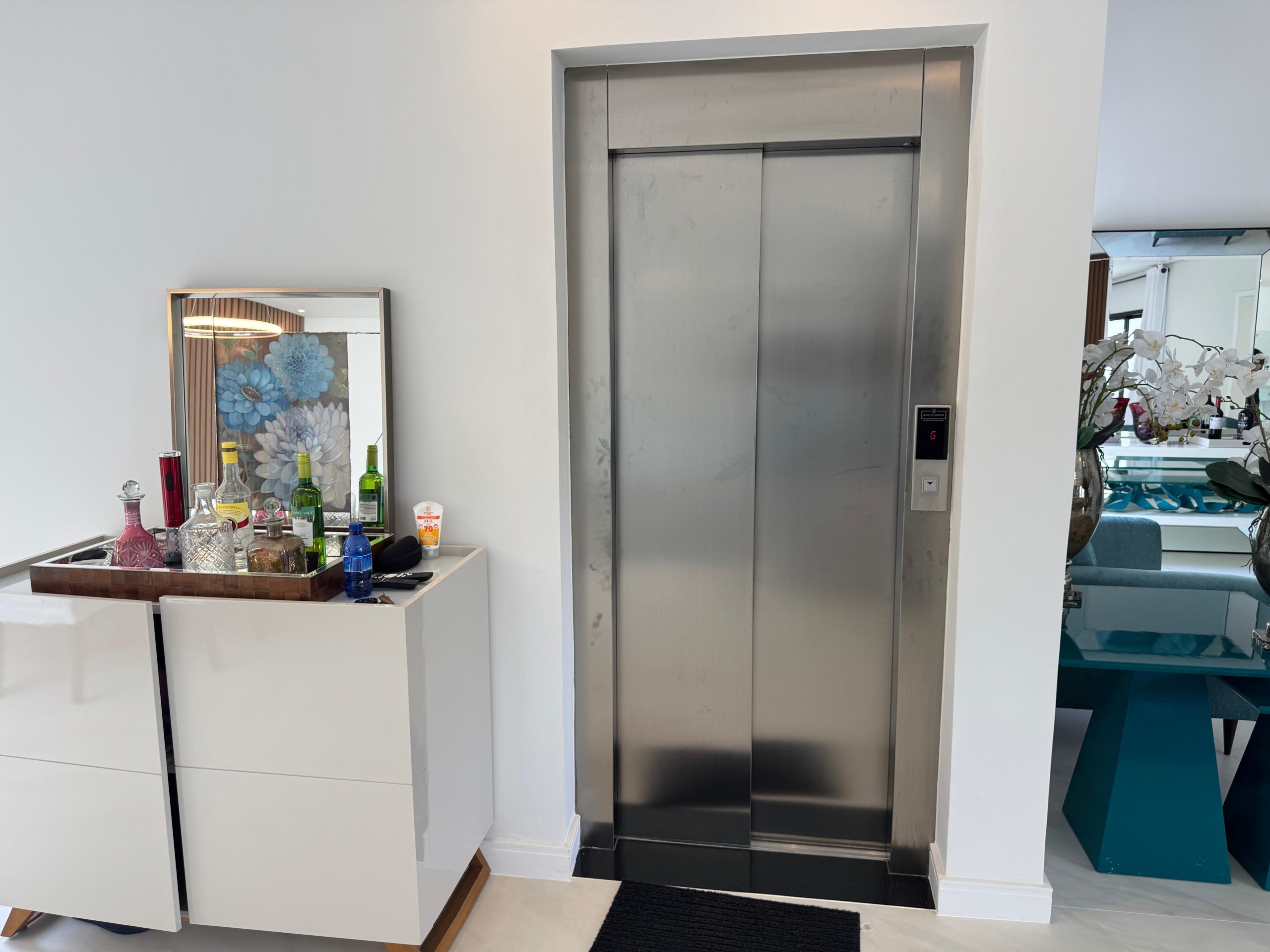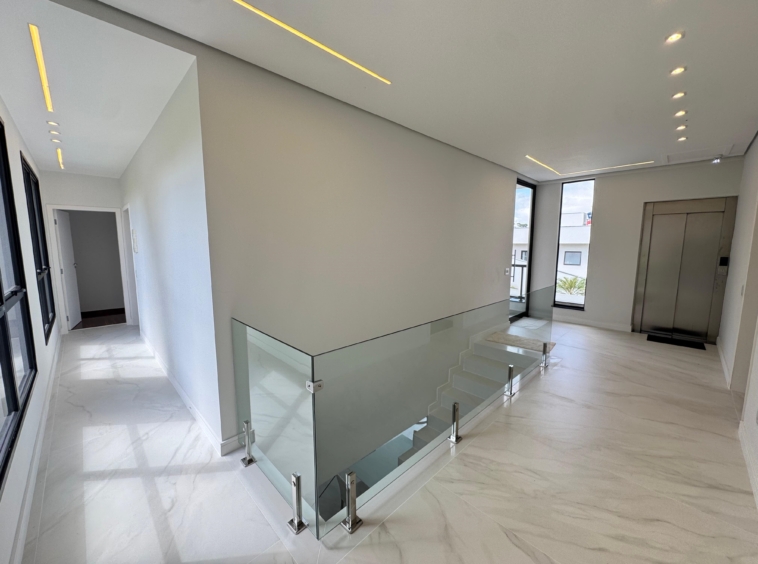 -Elevador com capacidade para 06 pessoas, atendendo todos os pavimentos da residência